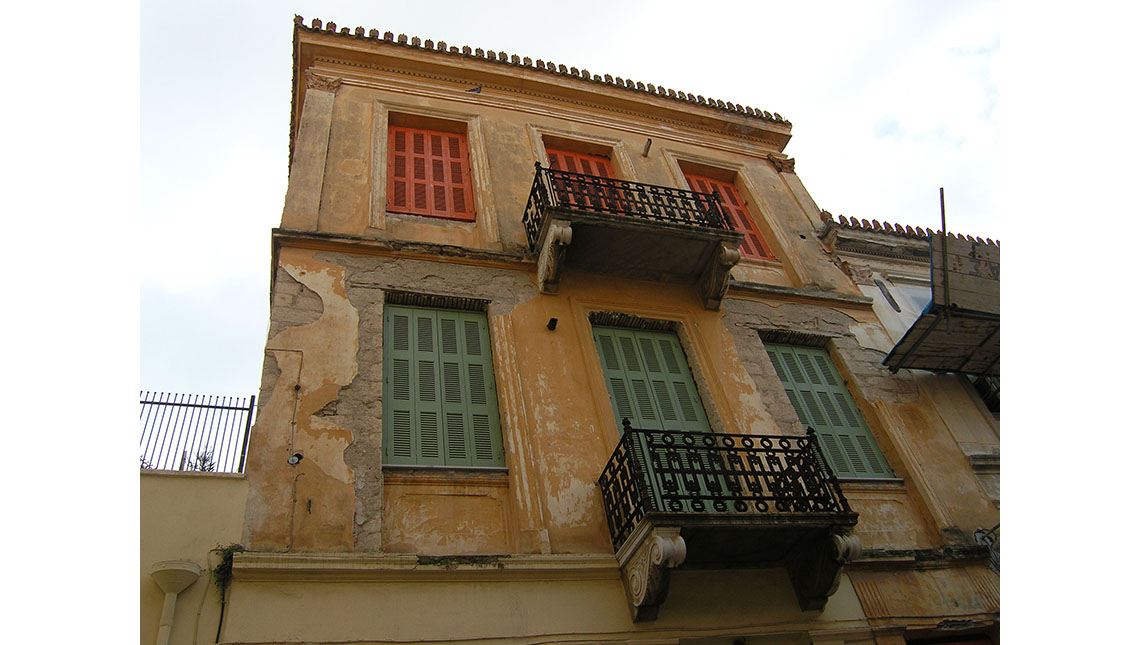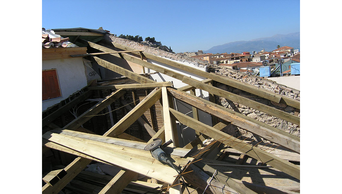 slider html Peloponnesian Folklore Foundation. Restoration of roofs and facades in a listed building. Nafplio Old Town, Vas. Olga Street, 2002.